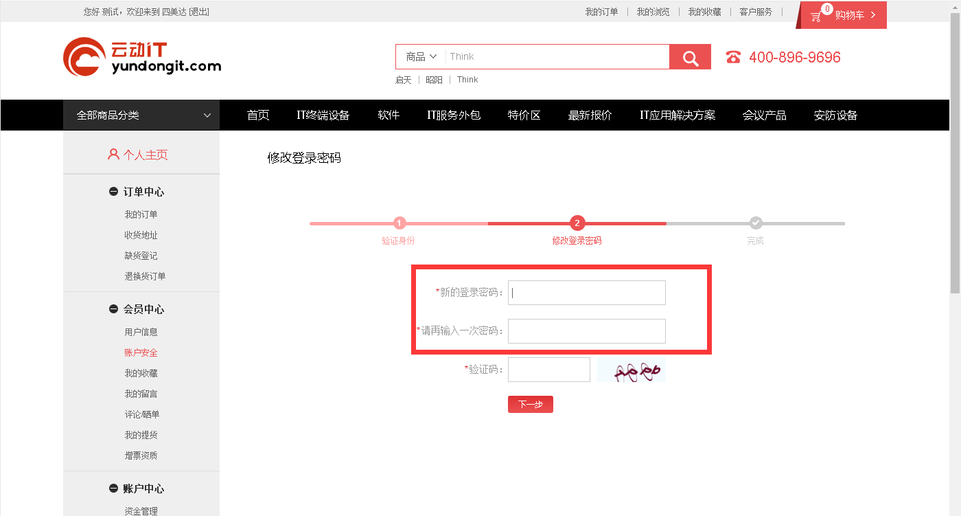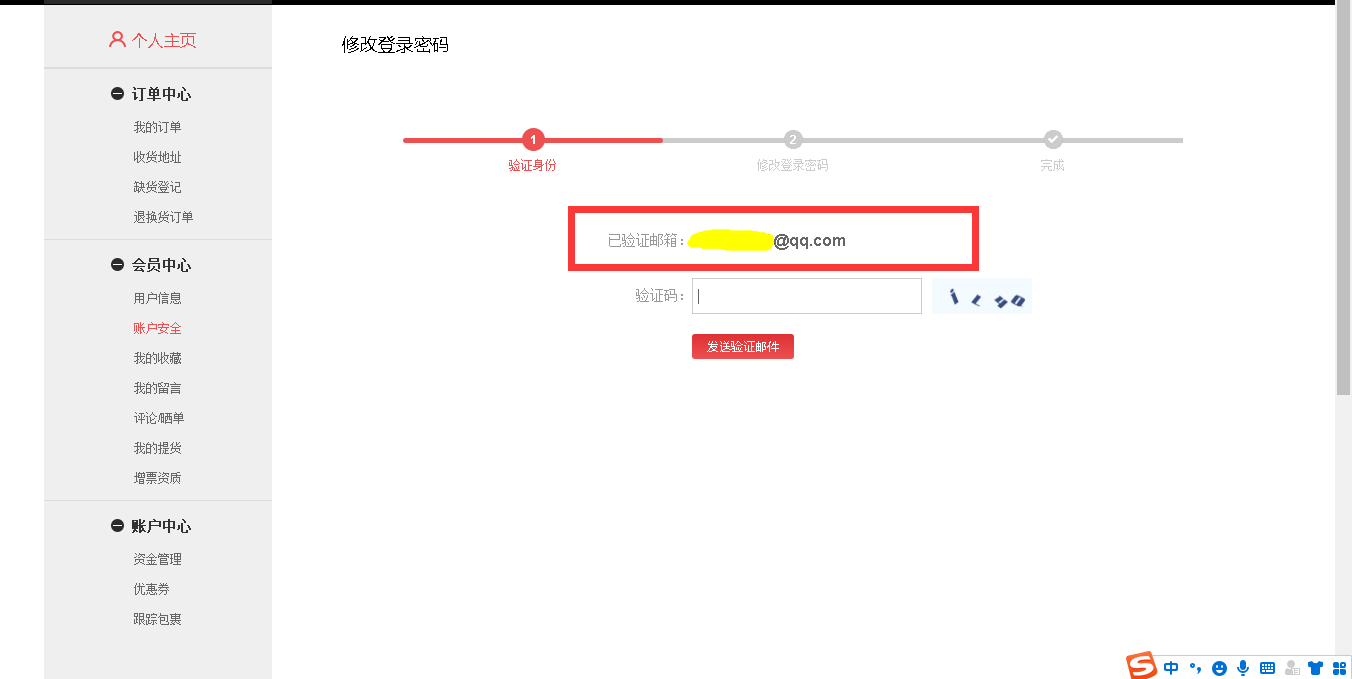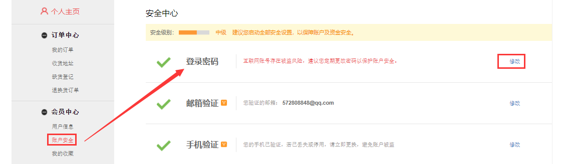 在个人主页——账户安全修改密码