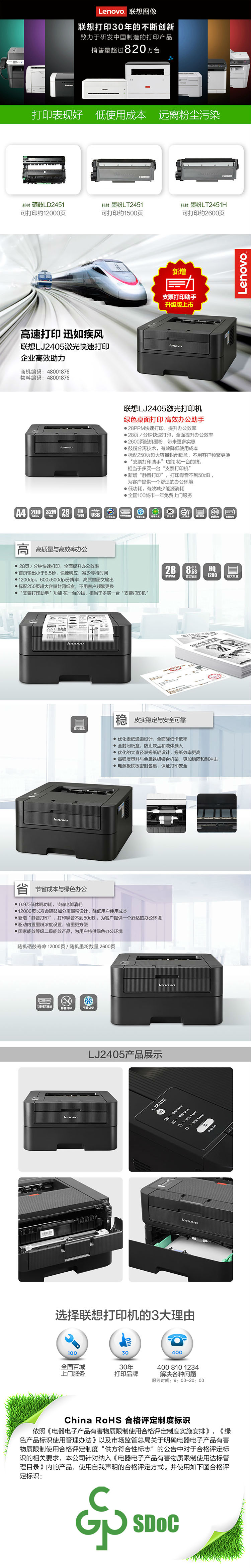 商品名称:联想激光打印机LJ2405