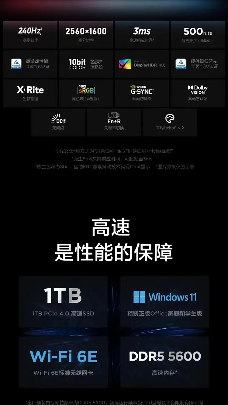 Y9000P 2023 I9-13900HX 16G 1Tssd RTX4050 6G 2.5k 240Hz高色域灰