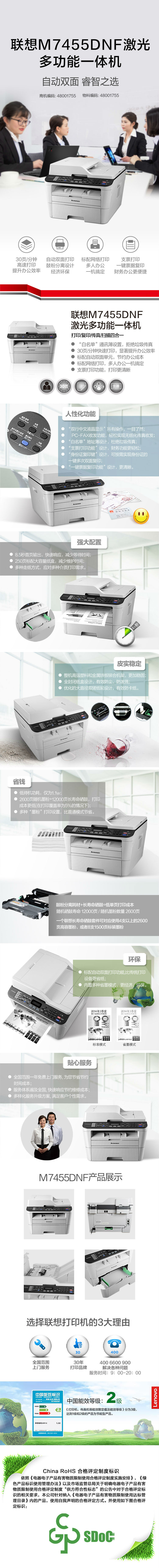 商品名称:联想A4黑白激光多功能─体机M7455DNF