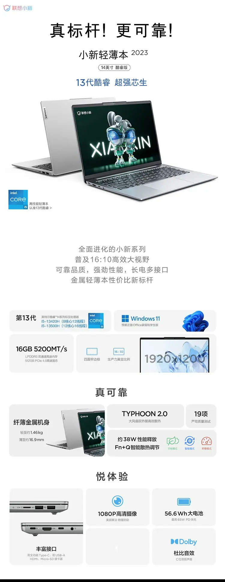 商品名称:小新14 2023 I5 13420H 16G 512G