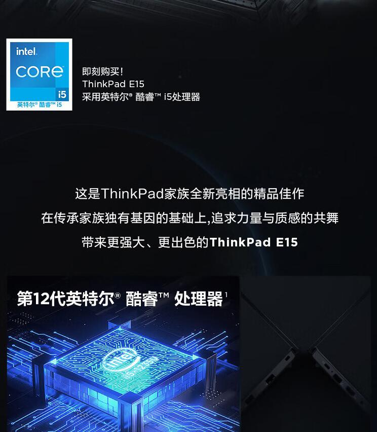 商品名称:联想笔记本电脑ThinkPad E15(6JCD)12代英特尔酷睿15.6英寸商务轻薄本电脑 I7-1255U 16G 512G MX550独显