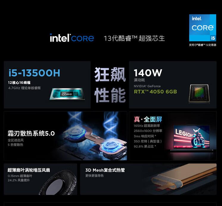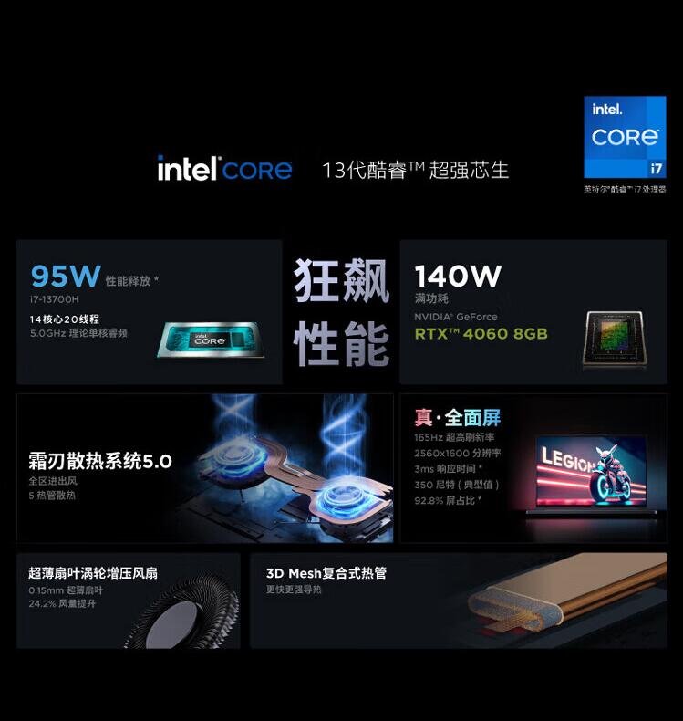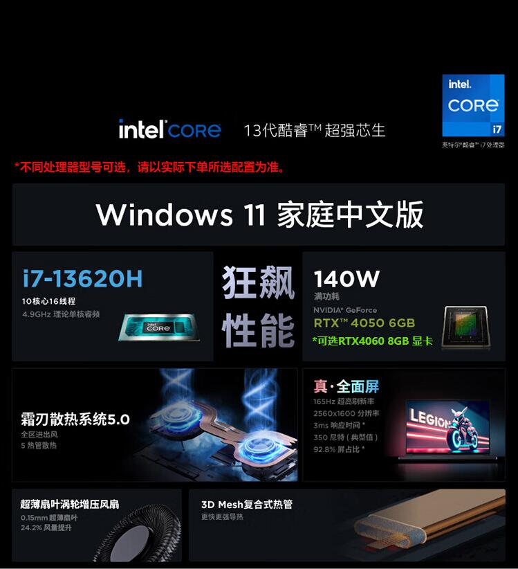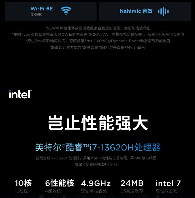 联想(Lenovo)拯救者Y7000P 13代英特尔酷睿 16英寸电竞游戏本笔记本电脑 i7-13620H 16G1T RTX4050