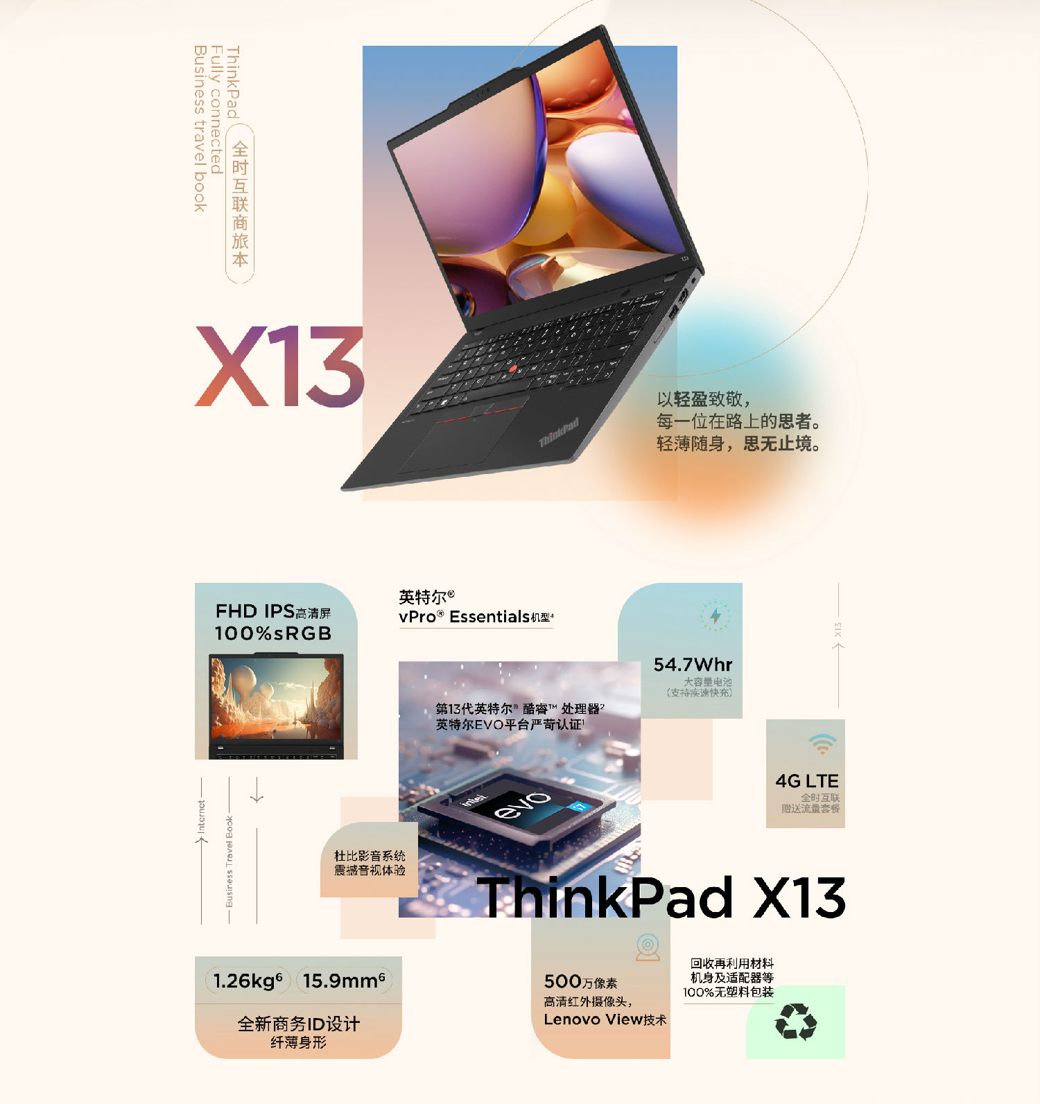 商品名称:ThinkPad X13 G4 21EYA0C0CD I5-1340P 16G 512GB SSD 13.3英寸 win 11 pro