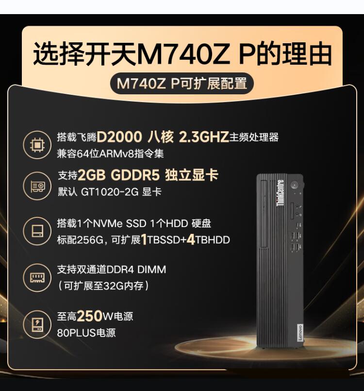 开天M740Z P-570 FT-D2000 8G 512G 2G独显 DVDRW UOS试用版 260W