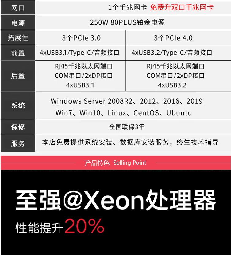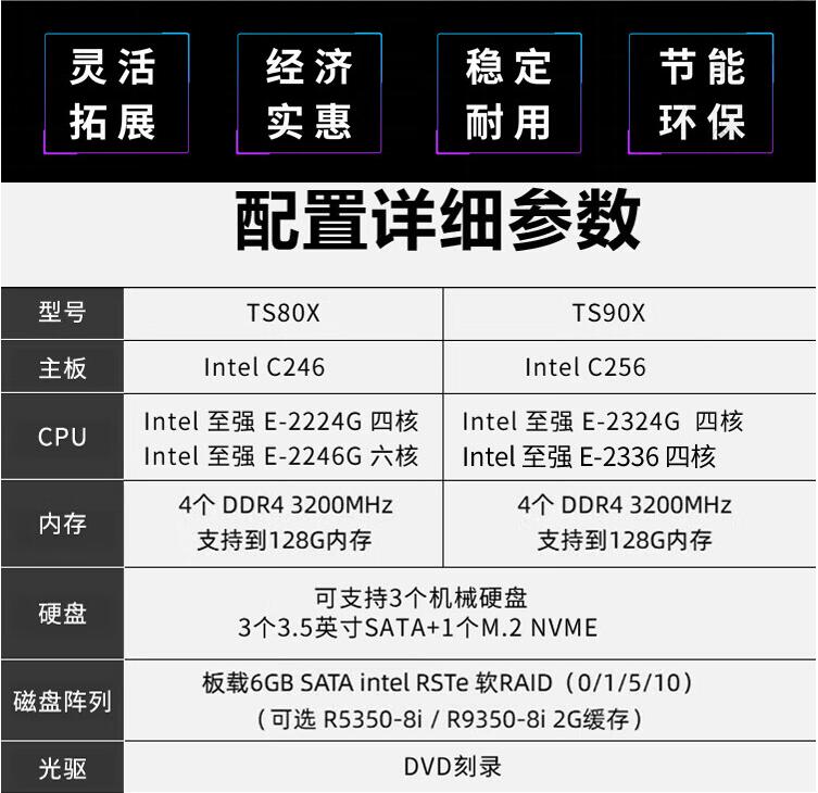 商品名称:ThinkServer TS80X E-2224G 32G DDR4 2*2TSATA 250W服务器