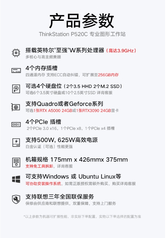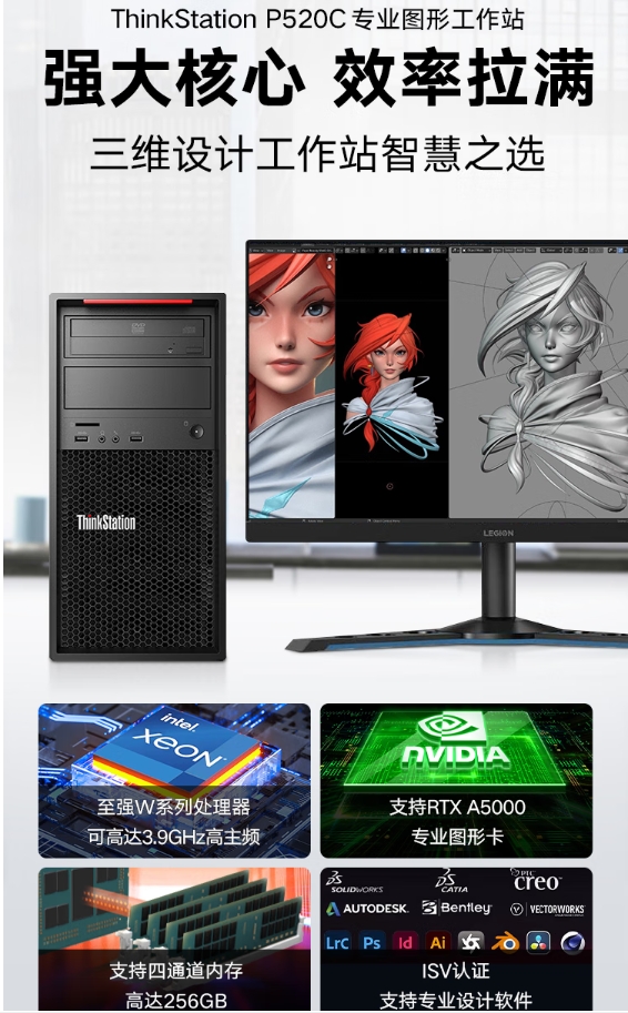 商品名称:ThinkStation P520C W-2223 32G 1T+512G SSD