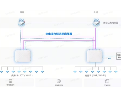 无线覆盖解决了医院现有无线不好用的问题,搭建了一个没有漫游零丢包的无线网络,为移动医疗业务的开展保驾护航。同时外网为病患家属提供了一个免费上网环境,提高病患满意度,提升了医院服务形象