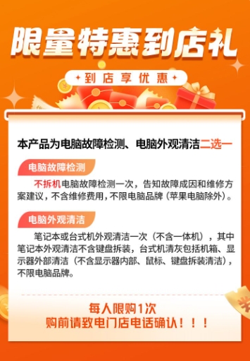 商品名称:【到店礼】电脑外观清灰、电脑故障检测二选一