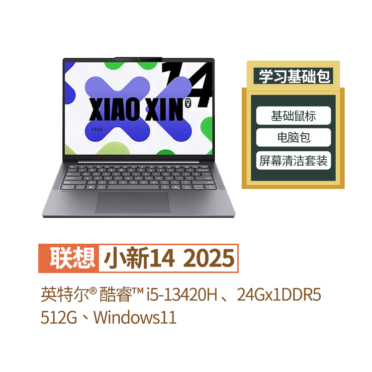 商品名称:【学霸套餐】联想小新14 2025款(送鼠标 + 电脑包+ 屏幕清洁套装)
