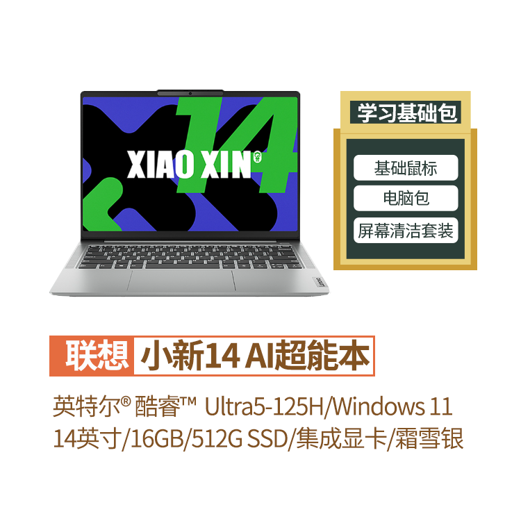 商品名称:【学霸套餐】小新14 AI超能本(送鼠标 + 电脑包+ 屏幕清洁套装)