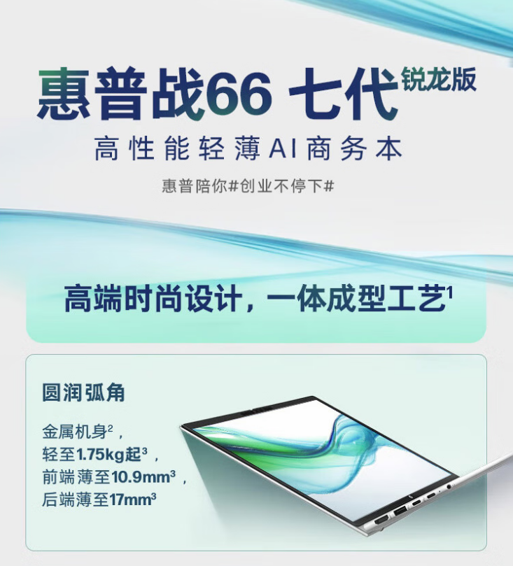 惠普(HP)战66七代 AMD锐龙16英寸轻薄笔记本电脑