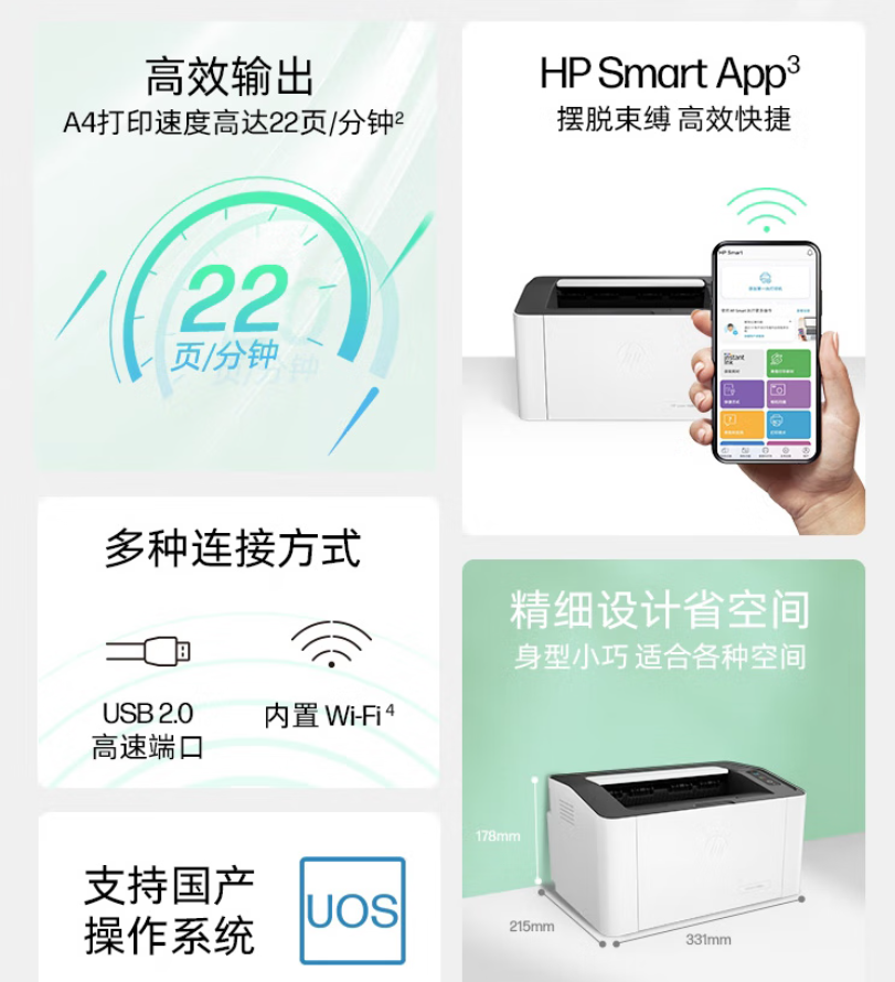 商品名称:惠普(HP)1008w 无线激光打印机 小型无线激光 学生家用打印 简约小巧