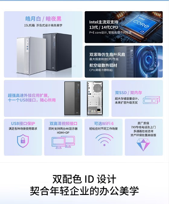 商品名称:联想(Lenovo)慧天M5 商用台式机办公电脑 15L大机箱 主机+23.8英寸高清显示器 标配i3-13100 8G内存 512G固态