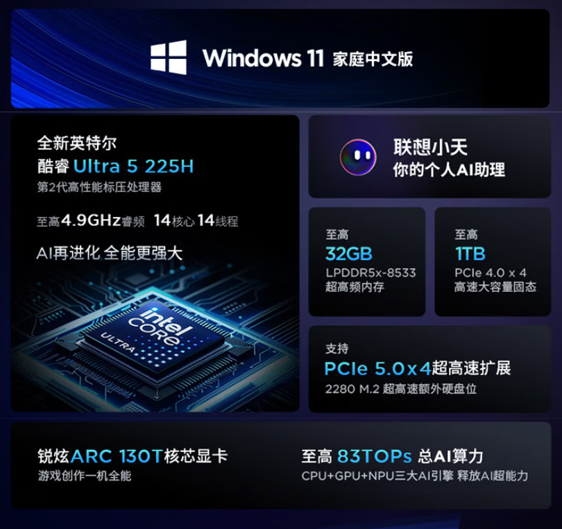 商品名称:联想笔记本电脑小新Pro14GT AI元启轻薄本2025 2代酷睿Ultra5 32G 1T 2.8K高刷OLED