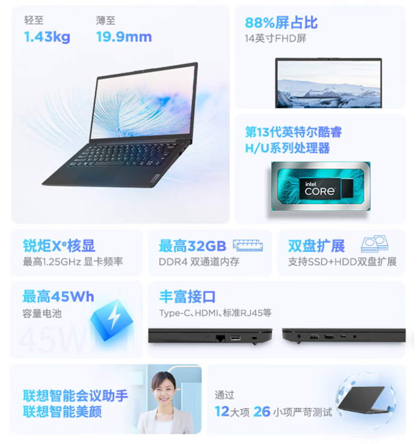 商品名称:联想(Lenovo)昭阳X3-14 14英寸商务办公学习笔记本电脑 标配 酷睿i3-1315U 16G 512G SSD 集显 win11