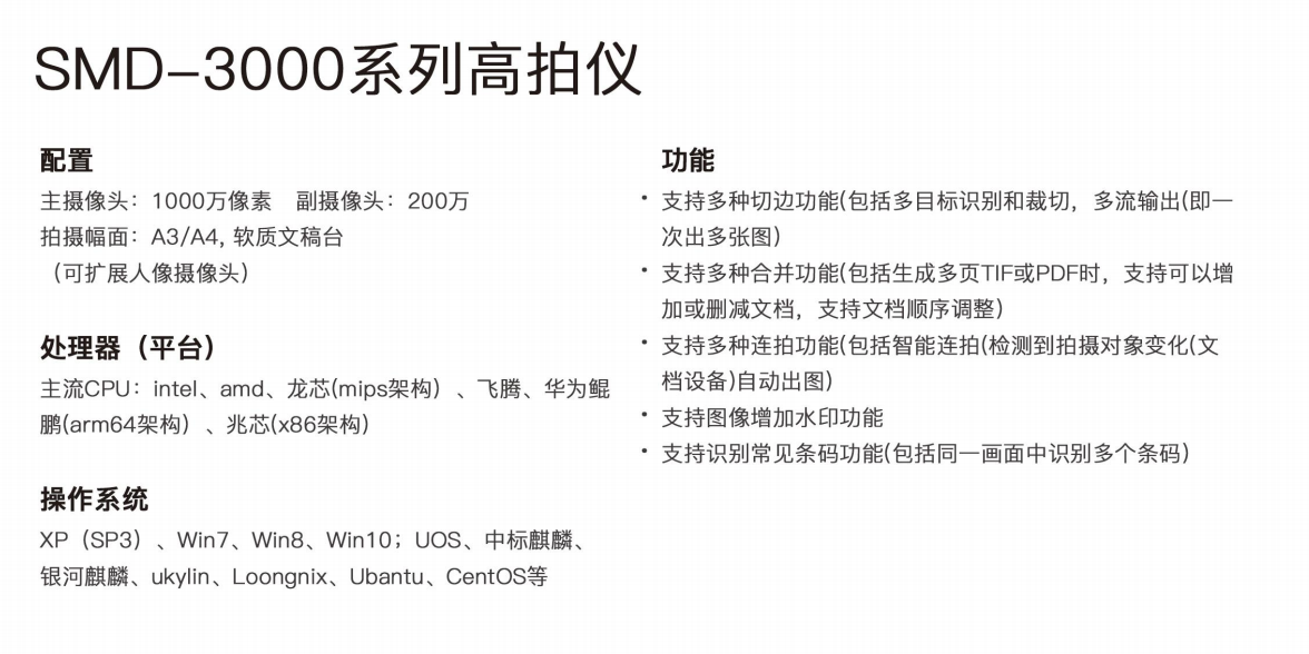 商品名称:SMD-3000系列高拍仪基础版