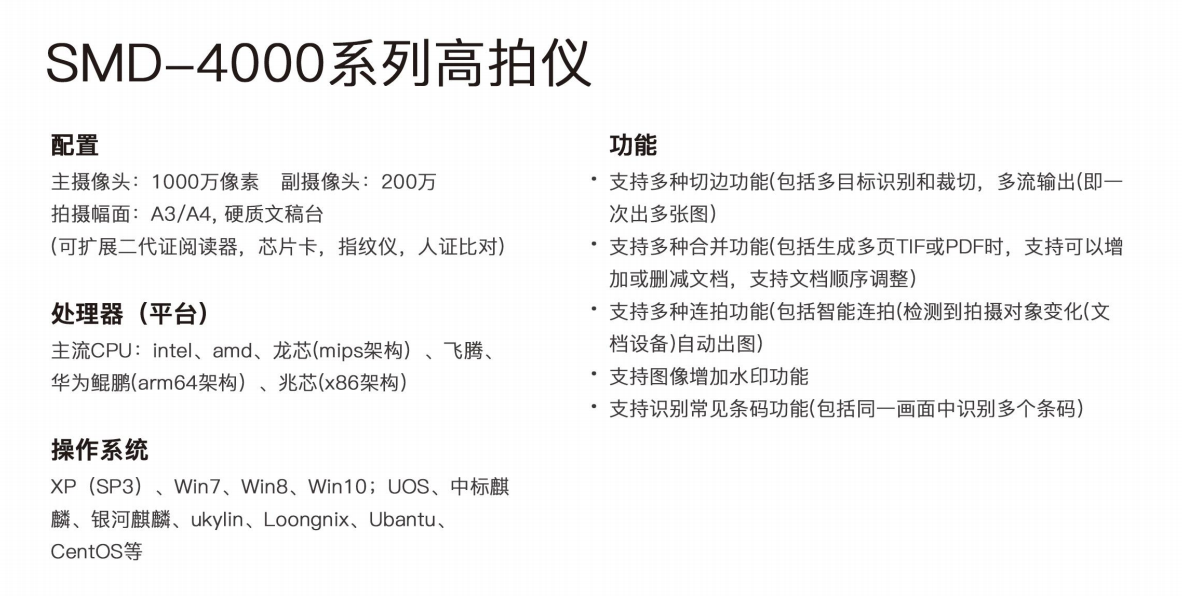 商品名称:SMD-4000系列高拍仪基础版