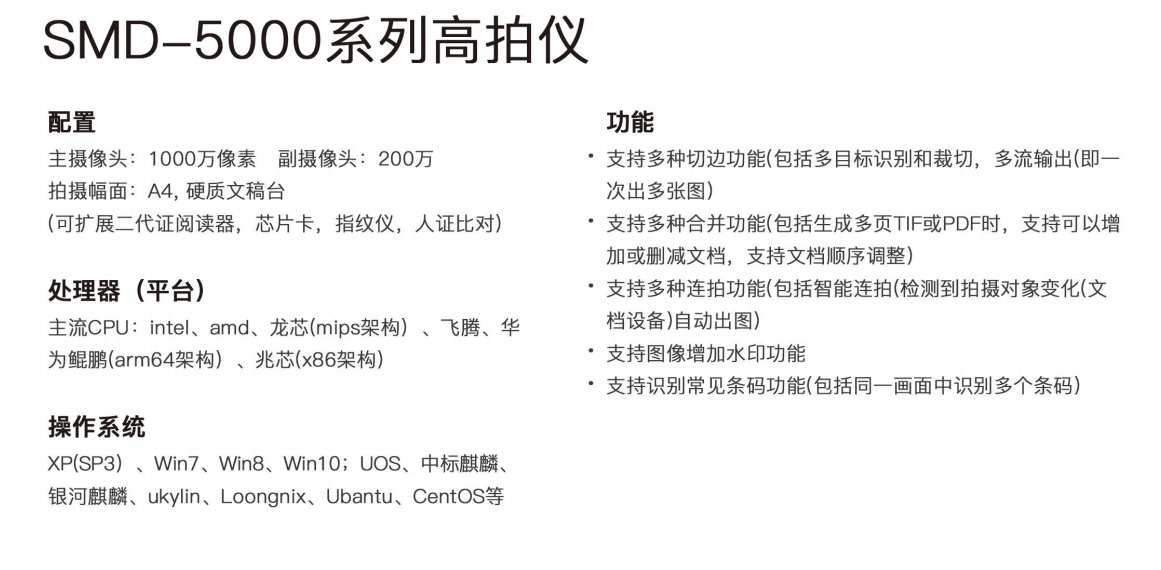商品名称:SMD-5000系列高拍仪基础版
