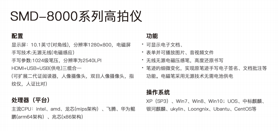 商品名称:SMD-8000系列高拍仪基础版